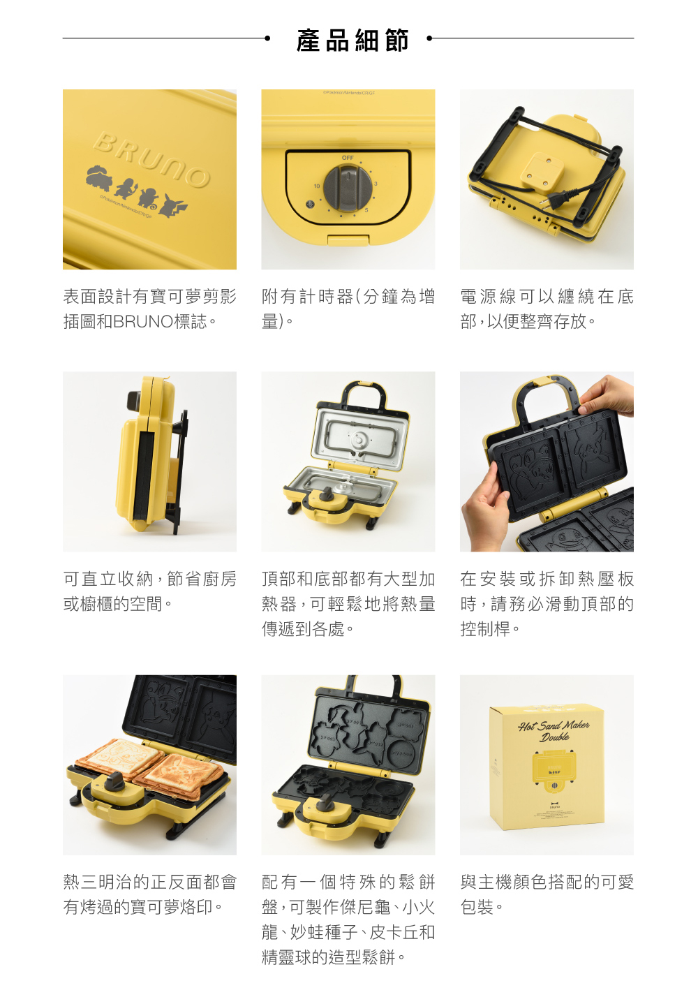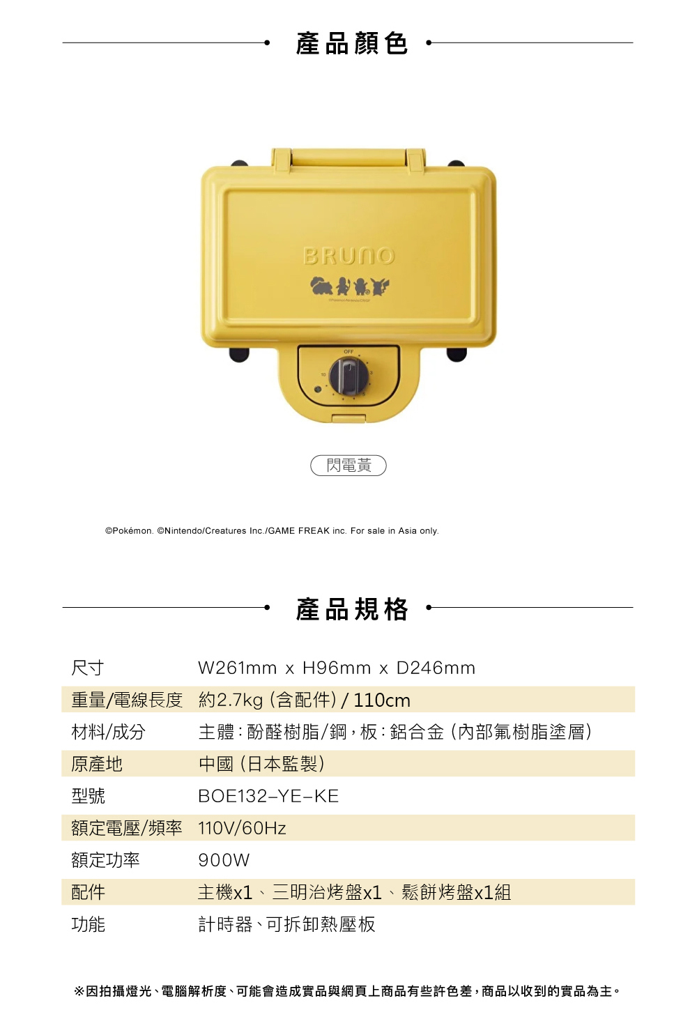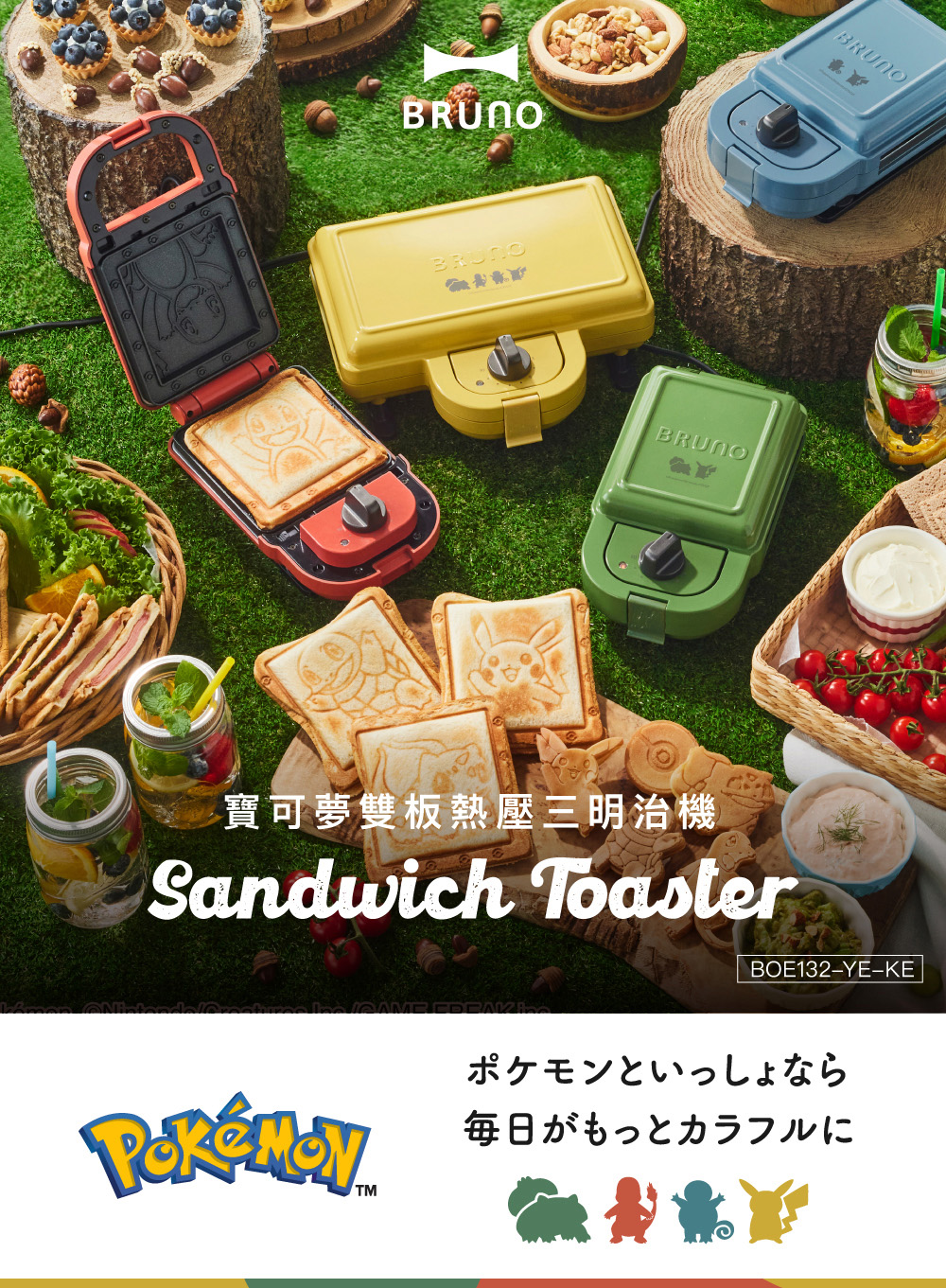 【BRUNO】日本 BRUNO X Pokemon 寶可夢限定聯名款熱壓吐司機/三明治機/鬆餅機 BOE132 原廠公司貨 110V